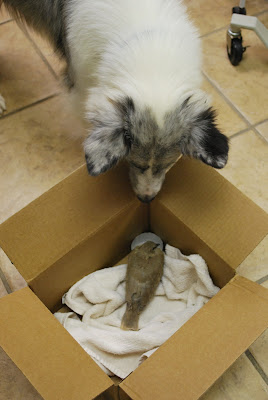 This is Luna, with a fledgling mourning dove that Kaela found on her way to work - since returned to the nest.